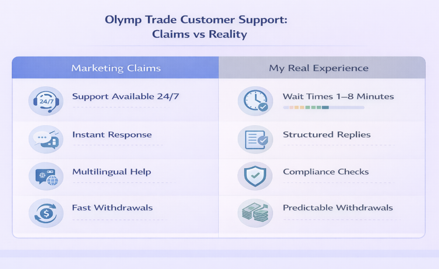 In my experience, Olymp Trade customer support: reality vs claims falls somewhere between promotional promises and exaggerated criticism.