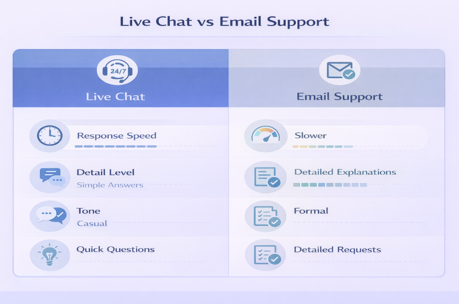 The difference between live chat and email was noticeable: