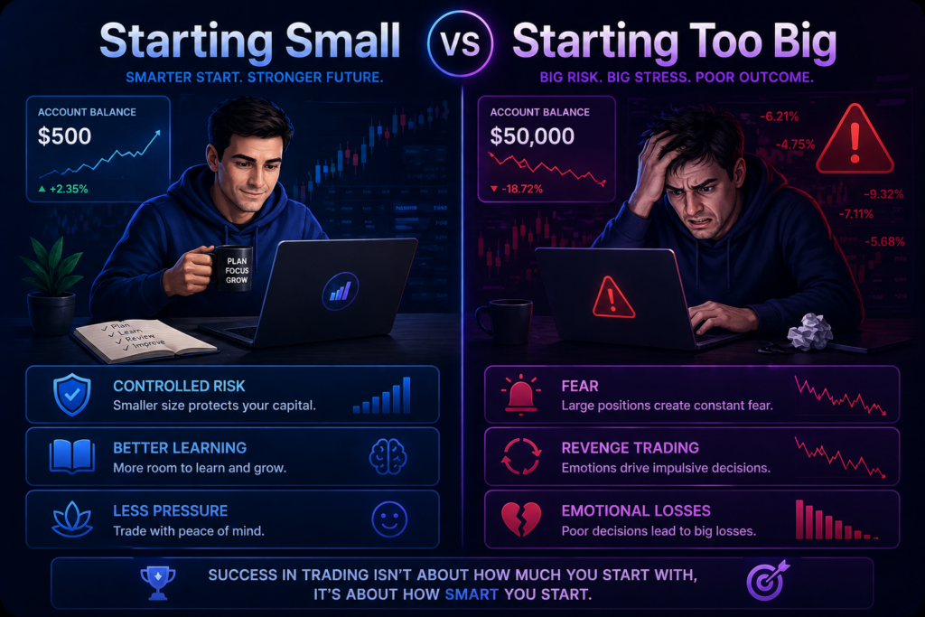 Trading success is usually built through discipline, education, and gradual growth—not one large deposit.
